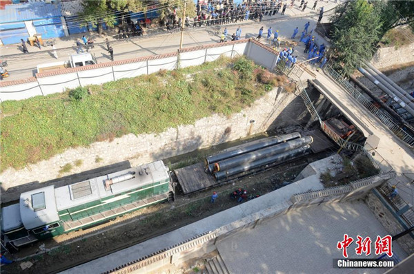 10月11日上午,山西太原鋼鐵集團(tuán)一列運(yùn)輸火車(chē)撞上一座跨鐵路橋,致橋梁半幅坍塌,5名未成年人受傷,一人傷勢(shì)較重。目前,事發(fā)地被藍(lán)色鐵皮封閉圍擋,禁止通行。太鋼集團(tuán)已組織人員對(duì)殘損橋梁進(jìn)行全面拆除,并調(diào)集山西省人民醫(yī)院和山西醫(yī)科大學(xué)第一附屬醫(yī)院的專(zhuān)家進(jìn)行醫(yī)療支援。