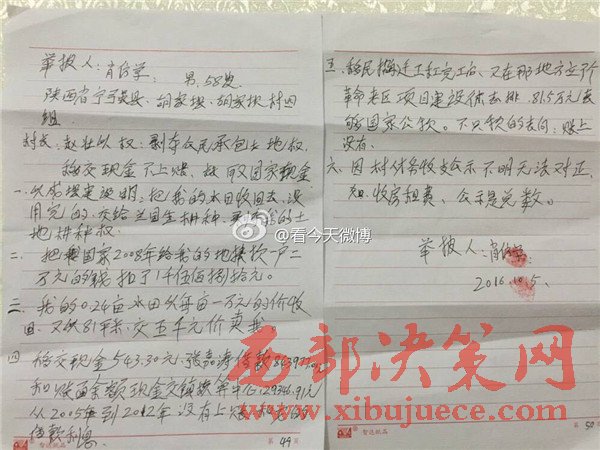 據(jù)實(shí)名舉報(bào)材料了解,早在2011年5月16日,經(jīng)群眾上訪,寧強(qiáng)縣縣紀(jì)委、縣檢察院就對(duì)黨支部書記劉全忠作出過處理,挽回財(cái)產(chǎn)損失859000元,但并未追究其法律責(zé)任。從胡家壩村公布的賬目來看,村民上訪前和上訪后僅“鎮(zhèn)政府付復(fù)耕青苗補(bǔ)償”單這一款項(xiàng)就有300元的出入。一個(gè)村子竟然存在兩本財(cái)政收支賬目,到底哪本賬才是胡家壩村真正的財(cái)政收支賬目呢?為什么要做兩本性質(zhì)相同的賬?會(huì)不會(huì)該村還有第三本賬?