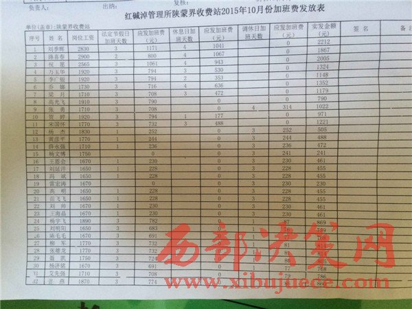 紀(jì)委王姓負(fù)責(zé)人告訴西部大開(kāi)發(fā)雜志社記者菜價(jià)偏高確實(shí)從在,人已經(jīng)換掉,正在調(diào)查中,他們公司并未下過(guò)處罰,也未發(fā)現(xiàn)篡改考勤一事,不存在套取國(guó)家國(guó)有資金,并且給西部大開(kāi)發(fā)雜志社記者拿出一塔資料,這就是陜蒙界收費(fèi)站的考勤表,西部大開(kāi)發(fā)雜志社記者看到考勤表上確實(shí)沒(méi)有任何涂改痕跡,其中陜蒙界收費(fèi)站劉站長(zhǎng)的上班天數(shù)也是23天。西部大開(kāi)發(fā)雜志社記者想要查看工資發(fā)放表格時(shí),得到結(jié)果還是無(wú)權(quán)了解。