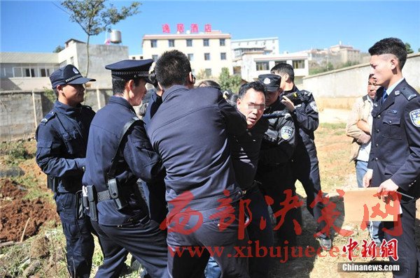11月14日,被執(zhí)行人親屬大鬧現(xiàn)場(chǎng)被控制。