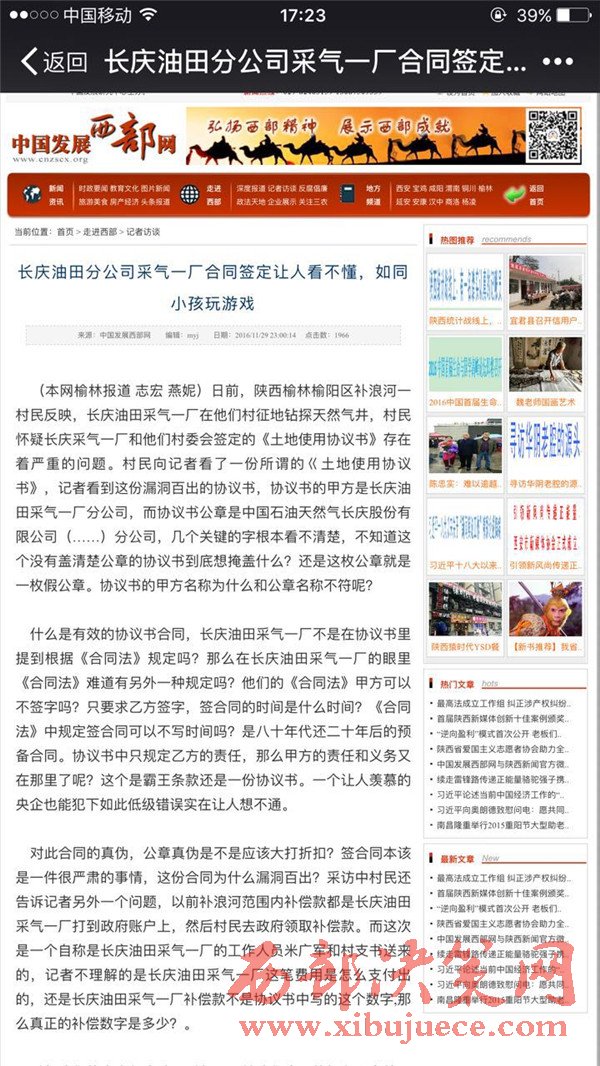 對此合同的真?zhèn)?,公章真?zhèn)问遣皇菓摯蟠蛘劭??簽合同本該是一件很嚴肅的事情,這份合同為什么漏洞百出?采訪中村民還告訴記者另外一個問題,以前補浪河范圍內補償款都是長慶油田采氣一廠打到政府賬戶上,然后村民去政府領取補償款。而這次是一個自稱是長慶油田采氣一廠的工作人員米廣軍和村支書送來的,記者不理解的是長慶油田采氣一廠這筆費用是怎么支付出的,還是長慶油田采氣一廠補償款不是協(xié)議書中寫的這個數字,那么真正的補償數字是多少?。