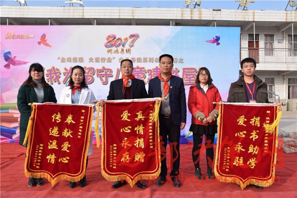 陜西省陽光少年資助協(xié)會顧問王余、會長王鳳英、秘書長溫向林、理事馬強(qiáng)、副會長張弘強(qiáng)、李江、辦公室主任王芷熹、會員代表王潤梅等;愛心人士河南電視臺睛彩中原欄目記者張文興、陜西源邦實(shí)業(yè)集團(tuán)王源、劉楊等愛心團(tuán)前往參加,為孩子們帶去愛心人士捐贈的一批課內(nèi)外書籍,并建成“潤鴻書屋”,藏書六百余本。此外,還為該校多名建檔立卡的貧困家庭學(xué)生送去書包、文具、手套、圍巾等學(xué)習(xí)生活用品。