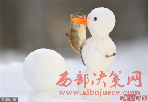 田鼠爬到小雪人身上,吃掉雪人“鼻子”萌翻了