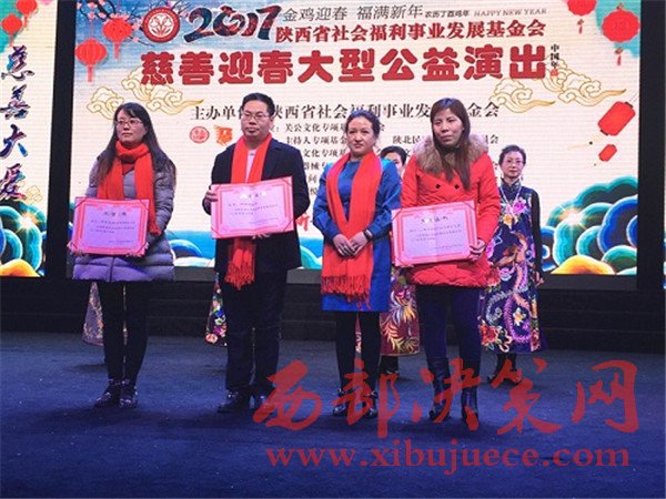 1月18日晚,由陜西省社會福利事業(yè)發(fā)展基金會主辦、關(guān)公文化專項基金委員會承辦、主持人專項基金委員會、陜北民歌專項基金委員會等協(xié)辦、陜西省民政廳指導的《慈善迎春》大型公益演出在蓮湖區(qū)絲路藝術(shù)劇院成功舉辦。