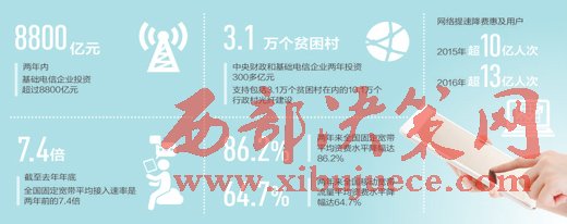 陳肇雄介紹,兩年來(lái),工信部會(huì)同有關(guān)部委,扎實(shí)推進(jìn)網(wǎng)絡(luò)提速降費(fèi)相關(guān)工作落實(shí)。圍繞網(wǎng)絡(luò)提速,一是深入推進(jìn)寬帶中國(guó)戰(zhàn)略。兩年內(nèi)基礎(chǔ)電信企業(yè)投資超過(guò)8800億元,國(guó)家發(fā)改委安排中央預(yù)算內(nèi)投資10億元,專(zhuān)項(xiàng)建設(shè)基金480億元,建成了全球規(guī)模最大的固定光纖和移動(dòng)4G網(wǎng)絡(luò)。二是加快實(shí)施電信普遍服務(wù)。中央財(cái)政和基礎(chǔ)電信企業(yè)兩年投資300多億元,支持包括3.1萬(wàn)個(gè)貧困村在內(nèi)的10.1萬(wàn)個(gè)行政村光纖建設(shè)。三是優(yōu)化互聯(lián)網(wǎng)骨干網(wǎng)網(wǎng)絡(luò)結(jié)構(gòu)。擴(kuò)容骨干網(wǎng)網(wǎng)間互聯(lián)帶寬1562G,新增3個(gè)互聯(lián)網(wǎng)骨干直聯(lián)點(diǎn),總數(shù)達(dá)到了13個(gè)。截至2016年年底,全國(guó)固定寬帶平均接入速率達(dá)到49M,是兩年前的7.4倍。光纖寬帶用戶占比從34.1%提升到76.6%,進(jìn)入全球前三位。根據(jù)中國(guó)寬帶聯(lián)盟發(fā)布的數(shù)據(jù),我國(guó)移動(dòng)寬帶網(wǎng)絡(luò)用戶平均體驗(yàn)速率已經(jīng)從3G的3.9M提升到目前4G的11.9M。4G用戶已經(jīng)達(dá)到7.7億戶,占全球4G用戶的一半以上。