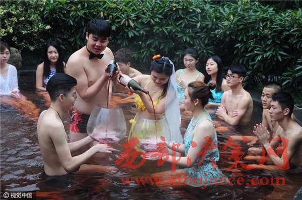 杭州現(xiàn)溫泉南瓜婚禮 新人賓客泳裝參加畫風奇特