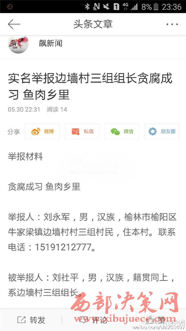 榆陽區(qū)牛家梁鎮(zhèn)邊墻村三組組長被實名舉報“貪腐成習魚肉鄉(xiāng)里”