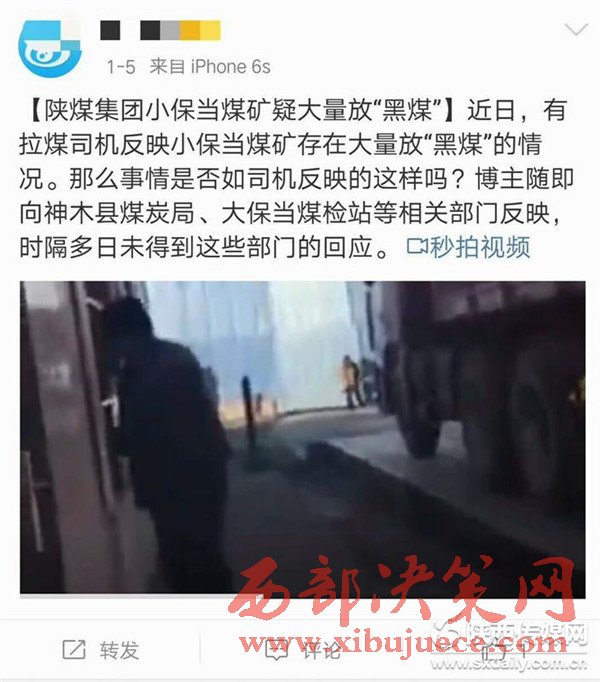 發(fā)稿前,記者又在網(wǎng)上獲悉,1月5日就有網(wǎng)民向神木縣煤炭局和大保當煤管站反映過小保當煤礦銷售黑煤的現(xiàn)象,該網(wǎng)民稱此事時隔多日未得到相關(guān)部門的回應(yīng)。