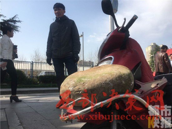 昨天(3月26日)上午,在西安南郊,一個電動車司機竟然搬起了一塊巨大的石頭,將自己的電動車砸毀,究竟是因為什么原因呢?
