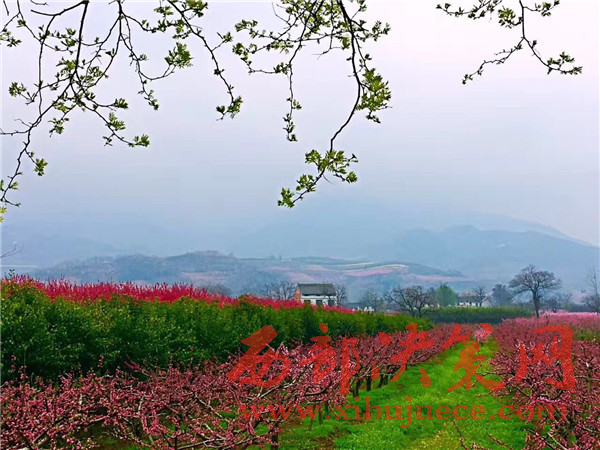 放眼望去,美麗的桃花就像是從天上掉下來的一片云霞。