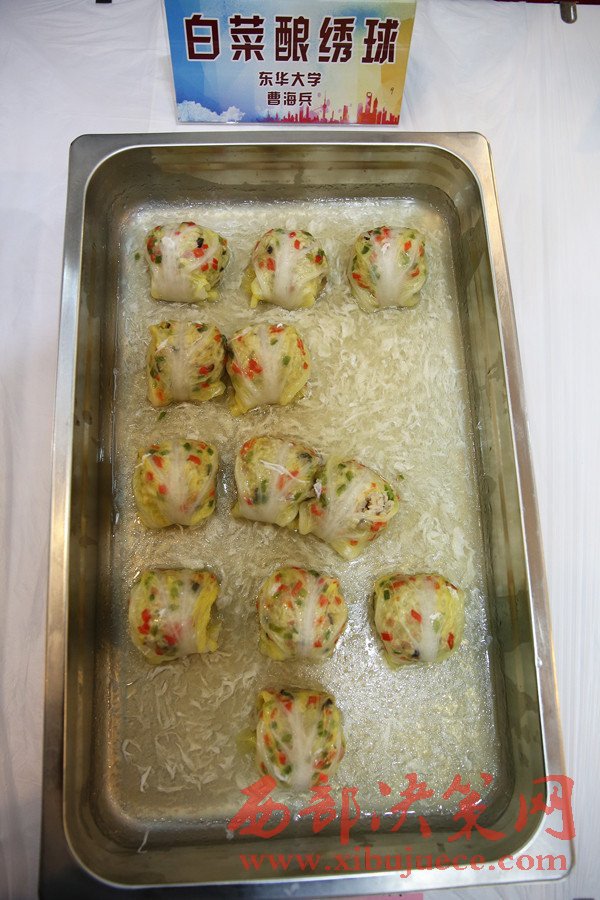 最終,在歷經(jīng)數(shù)個小時的比賽后,東華大學(xué)怡香菊花雞、復(fù)旦大學(xué)一品葫蘆鴨、上海財經(jīng)大學(xué)時蔬雞翅、上海外國語大學(xué)燈籠雞米盞等10道菜脫穎而出,獲得禽菜類前10名,東華大學(xué)白菜釀繡球、上海音樂學(xué)院果味麻花魚、上海交通大學(xué)芝士烤甘薯等5道菜獲得人氣類前5名。