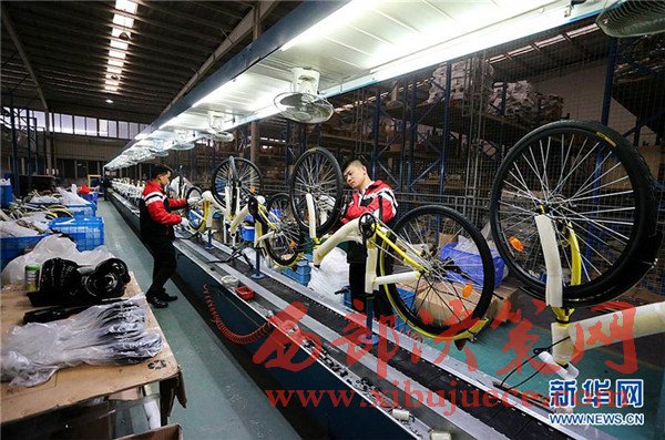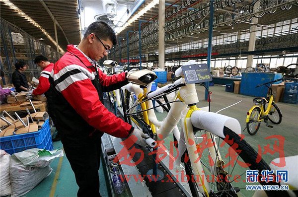 4月10日,在天津市武清區(qū)南蔡村鎮(zhèn)一家自行車生產(chǎn)企業(yè),工人在包裝共享單車車架。該企業(yè)日均下線共享單車約1500輛,目前正擴(kuò)充生產(chǎn)線,開(kāi)足馬力生產(chǎn)共享單車。隨著共享單車走紅大江南北,國(guó)內(nèi)傳統(tǒng)自行車制造業(yè)迎來(lái)新的機(jī)遇。共享單車投放量的快速增加,給自行車行業(yè)注入一針強(qiáng)心劑,多地自行車企業(yè)著手調(diào)整思路、升級(jí)產(chǎn)能,為下一步發(fā)展做準(zhǔn)備。