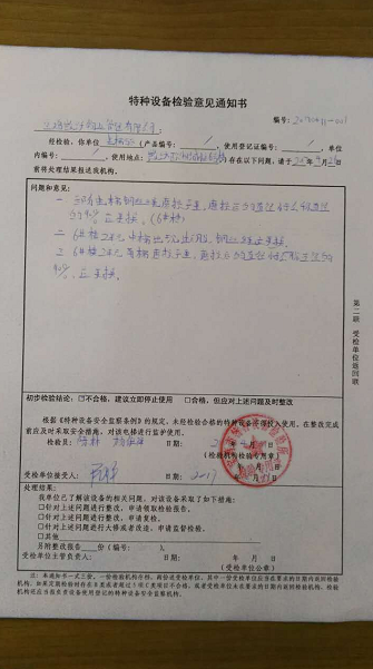 經(jīng)過(guò)特檢所現(xiàn)場(chǎng)檢驗(yàn),發(fā)現(xiàn)三部電梯鋼絲繩磨損嚴(yán)重,6號(hào)樓2單元中梯、北梯鋼絲均出現(xiàn)斷股,現(xiàn)場(chǎng)建議更換鋼絲繩,后出具特種設(shè)備檢驗(yàn)意見(jiàn)通知書,對(duì)于檢查出的問(wèn)題要求立即停止使用。