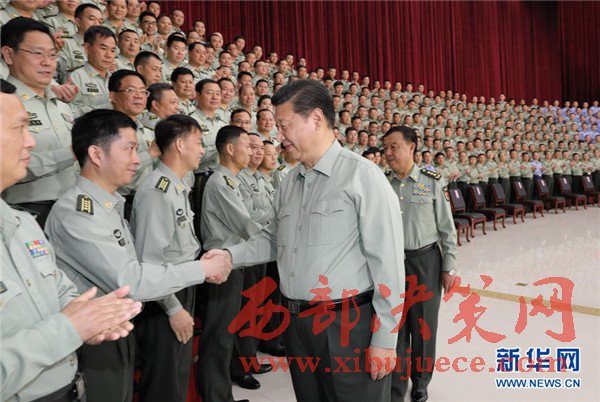 中共中央總書記、國家主席、中央軍委主席習近平21日視察南部戰(zhàn)區(qū)陸軍機關,強調(diào)要以黨在新形勢下的強軍目標為引領,貫徹新形勢下軍事戰(zhàn)略方針,堅持穩(wěn)中求進工作總基調(diào),堅持政治建軍、改革強軍、依法治軍,求真務實,開拓創(chuàng)新,真抓實干,扎扎實實落實好軍委部署的各項工作任務,努力開創(chuàng)部隊工作新局面,以優(yōu)異成績迎接黨的十九大召開。