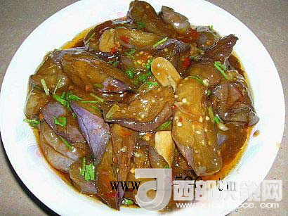 3、鍋內(nèi)留油,下入姜米、肉泥、茄子、雞湯、鹽、味精、白糖、老抽王,用小火燒至汁濃時再用濕生粉勾芡,淋麻油即成。