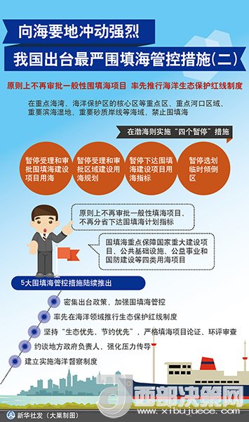 ?。保啡眨瑖?guó)家海洋局舉行圍填海情況新聞發(fā)布會(huì),國(guó)家海洋局副局長(zhǎng)林山青宣布,結(jié)合圍填海督察整改工作,國(guó)家海洋局將采取“史上最嚴(yán)圍填海管控措施”,以期保護(hù)優(yōu)先、集約利用的用海理念牢固確立,使海域開發(fā)利用得到可持續(xù)發(fā)展。