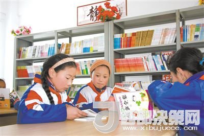 雜多縣第三完全小學圖書室里孩子們正在閱讀。記者 洪玉杰 攝