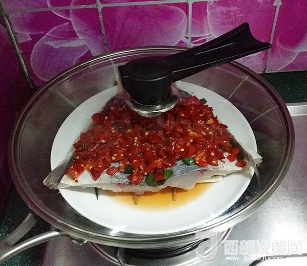 3、蒸魚(yú)跟平時(shí)蒸包子饅頭一樣,得上汽后放入這樣可使魚(yú)快速成熟,吃起來(lái)也更鮮嫩