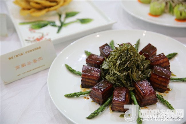 蘋果、獼猴桃、秦川肉牛、茶葉、羊奶等陜西農(nóng)業(yè)五寶做成的菜品不但好吃還好看。“蘇陜協(xié)作•2018年陜西特色農(nóng)產(chǎn)品南京宣傳推介周”以“推介特色產(chǎn)品、助力產(chǎn)業(yè)扶貧”為主題,由陜西省農(nóng)業(yè)廳與江蘇省農(nóng)委共同主辦。總展覽面積8000多平方米,來自陜西的100余家企業(yè)帶來了200多種琳瑯滿目的特色農(nóng)產(chǎn)品。