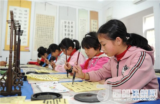 陜西省漢中市勉縣溫泉鎮(zhèn)中心小學(xué),是勉縣在汶川地震受災(zāi)后重建的一所鄉(xiāng)村小學(xué),目前在校學(xué)生470人。近年來(lái),溫泉鎮(zhèn)中心小學(xué)不斷改善辦學(xué)條件和辦學(xué)質(zhì)量,在校內(nèi)建成音樂(lè)教室、書(shū)法教室、圖書(shū)室等多樣化教學(xué)場(chǎng)所,并長(zhǎng)期開(kāi)展舞蹈課、書(shū)法課、民俗表演課等素質(zhì)教育課程,使學(xué)生們能夠享受到優(yōu)質(zhì)的教育服務(wù)。新華社發(fā)(張博文 攝)