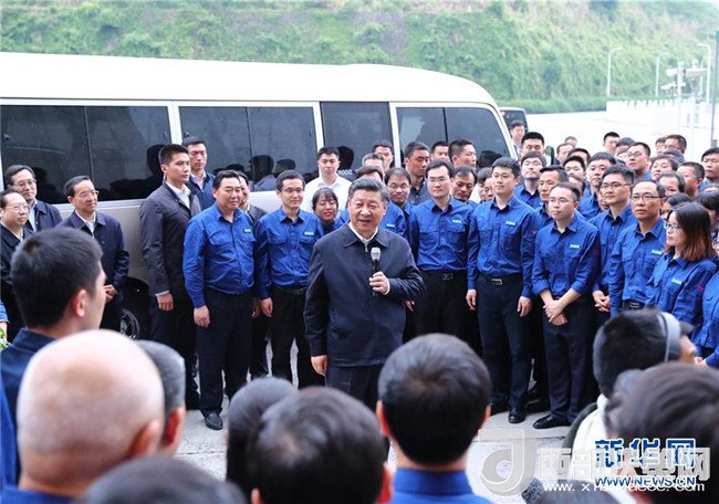 4月26日下午,中共中央總書記、國家主席、中央軍委主席習(xí)近平在武漢主持召開深入推動長江經(jīng)濟帶發(fā)展座談會并發(fā)表重要講話。這是座談會前,習(xí)近平于24日下午在三峽大壩左岸電站同技術(shù)人員、勞動模范、工作人員代表親切交流。新華社記者 謝環(huán)馳 攝