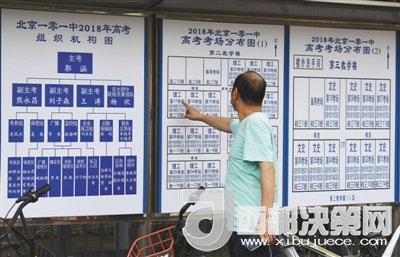 6月6日,考生家長在101中學校外觀看考場分布圖。