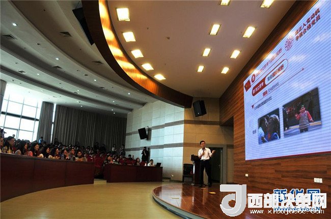 2016年5月16日,徐川在南京航空航天大學(xué)報(bào)告廳給同學(xué)們上《端正入黨動機(jī) 爭做合格黨員》黨課。新華社記者 林凱 攝