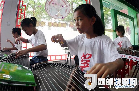7月12日,孩子們在廣西欽州市一家古箏培訓(xùn)中心練習(xí)。