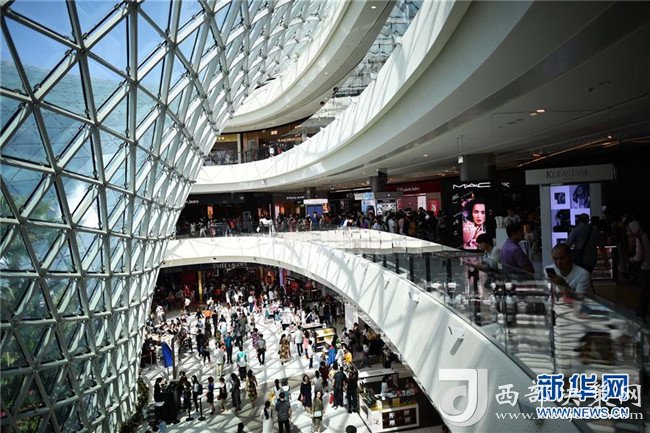 2018年2月18日,顧客在海南三亞海棠灣免稅店內(nèi)游覽、購(gòu)物。新華社記者 郭程 攝