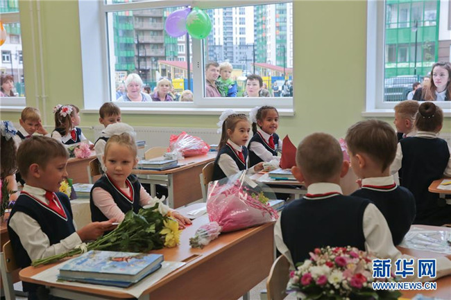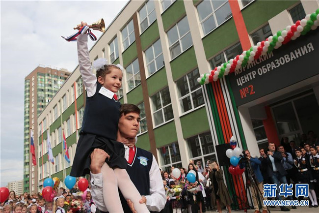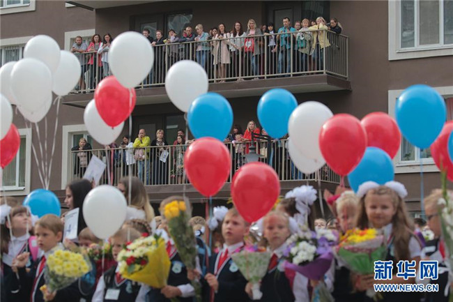 當天是俄羅斯開學(xué)日,也是俄羅斯的“知識日”,眾多學(xué)校舉行開學(xué)典禮,迎接新學(xué)期的開始。 新華社發(fā)(莫京娜 攝)