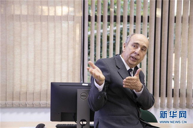8月30日,在巴西圣若澤杜斯坎普斯,中國-巴西空間天氣聯(lián)合實(shí)驗(yàn)室巴方運(yùn)營負(fù)責(zé)人若阿金·科斯塔在介紹實(shí)驗(yàn)室運(yùn)轉(zhuǎn)情況?!⌒氯A社記者 李明 攝