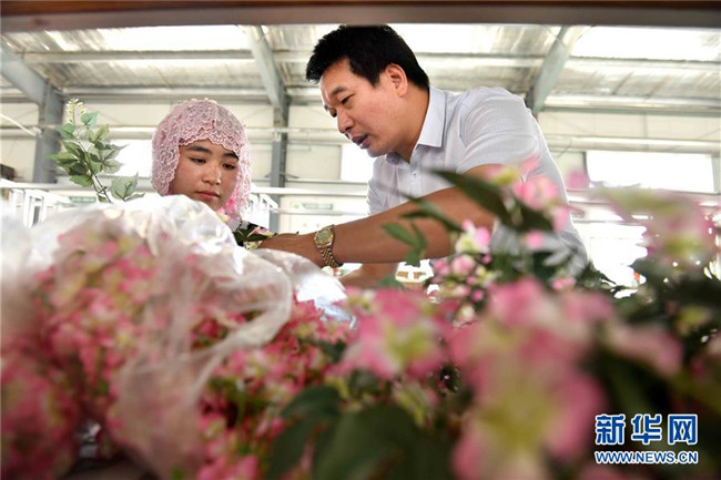 潘文賢(右)在寧夏固原市隆德縣隆德人造花工藝有限公司向員工介紹人造花制作技術(shù)(8月29日攝)。來自福建南安市的潘文賢2011年在隆德縣創(chuàng)辦隆德人造花工藝有限公司,成為隆德縣第一家集研發(fā)、生產(chǎn)和銷售于一體的勞動密集型出口創(chuàng)匯企業(yè),產(chǎn)品遠(yuǎn)銷歐美及東南亞等國家和地區(qū)。截至2017年底,已成功打造隆德縣前莊村、紅崖社區(qū)等5個(gè)扶貧車間,幫助150人穩(wěn)定就業(yè)、218戶外加工戶靈活增收,帶動300多個(gè)建檔立卡戶增收脫貧。 新華社記者郭緒雷攝