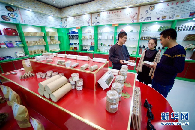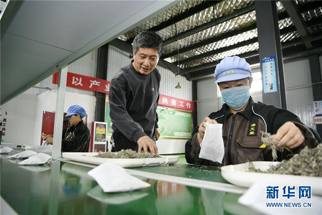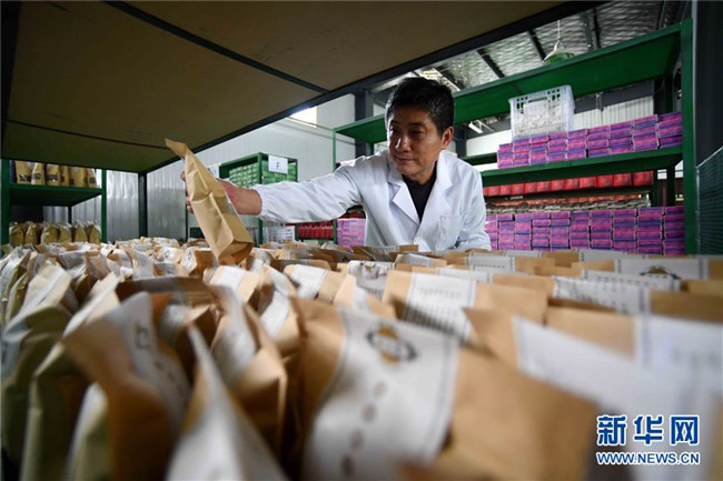 林玉清在寧夏固原市西吉縣寧夏澤艾堂生物科技有限公司查看艾草產(chǎn)品(8月30日攝)。來自福建莆田的林玉清2017年3月在西吉縣成立寧夏澤艾堂生物科技有限公司,依托西吉縣優(yōu)質(zhì)的艾草種植條件,采用“公司+合作社+農(nóng)戶”的訂單農(nóng)業(yè)合作模式,與吉強(qiáng)、新營等鄉(xiāng)鎮(zhèn)種植專業(yè)合作社合作建成艾草種植基地11個(gè)、推廣種植艾草6000畝,為當(dāng)?shù)厝罕娒撠氈赂讳伨托侣纷印P氯A社記者郭緒雷攝