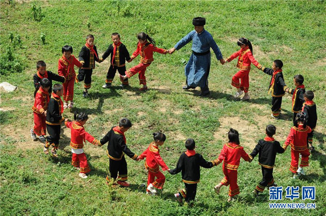 9月5日,貴州畢節(jié)市黔西縣花溪彝族苗族鄉(xiāng)豐坪小學(xué)教師楊朝俊和學(xué)生一起跳民族舞蹈。時至今日,楊朝俊在當?shù)亟虝延?4個年頭,曾孤身一人守著豐坪小學(xué)兩個年級的30余名學(xué)生,照顧他們的學(xué)習(xí)和生活。楊朝俊默默堅守的事跡,吸引了一名支教老師前來“搭班”。今年新學(xué)期開學(xué)時,當?shù)亟逃块T又選派了一名年輕的特崗教師來到學(xué)校,分擔(dān)教學(xué)工作。新華社發(fā)(楊文斌攝)