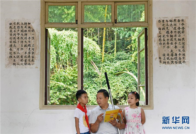 9月5日,云南省祿勸彝族苗族自治縣撒營盤鎮(zhèn)三蒙村阿依羊小學(xué)教師王正祥在給學(xué)生們上課。阿依羊小學(xué)位于海拔2600米的山間,交通不便,全校只有8名學(xué)生。而今年56歲的王正祥既是學(xué)校唯一的老師,也在生活上給了孩子們無微不至的關(guān)心。1980年,王正祥開始從教,在大山深處一干就是38年。他說:“村里就我一個老師,只要有一個學(xué)生,我都要教下去,不讓孩子輟學(xué)。希望他們像小鷹一樣飛出大山,能有更光明的未來。”新華社記者 藺以光 攝