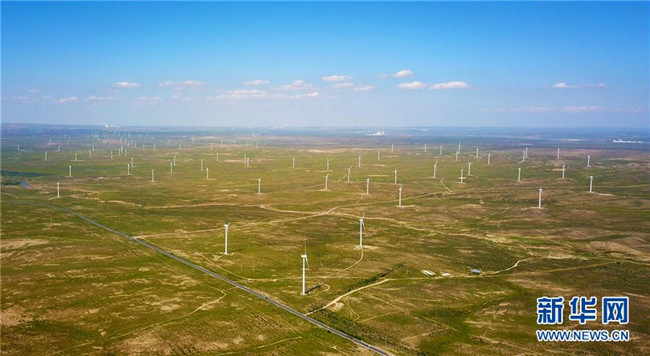 寧夏吳忠市太陽山風(fēng)電場(8月24日無人機(jī)拍攝)。 寧夏,地處中國西北腹地。這里的大山、大河、草原、沙漠、湖泊,猶如一幅幅美妙畫卷,讓人流連忘返。 新華社記者 郭緒雷 攝