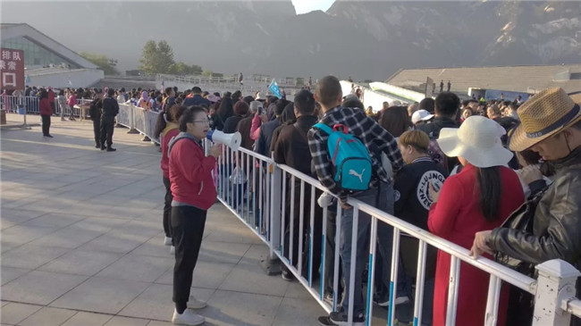 節(jié)日期間,景區(qū)實(shí)施了一系列限流、分流措施,集團(tuán)通過官網(wǎng)、微博、微信、廣播、LED屏幕等平臺定時公布景區(qū)天氣情況、游客數(shù)量、車輛飽和度等信息,在景區(qū)客流即將達(dá)到當(dāng)日限控客流時,及時發(fā)布周邊景區(qū)旅游信息,引導(dǎo)游客現(xiàn)行前往周邊景區(qū)游覽。限控措施的實(shí)施對景區(qū)山下餐飲、住宿等旅游產(chǎn)業(yè)以及潼關(guān)東山、少華山以及洽川濕地等渭南市周邊景區(qū)起到了有效帶動作用,促進(jìn)了渭南市全域旅游快速發(fā)展。度節(jié)期間,集團(tuán)積極協(xié)調(diào)相關(guān)單位,將執(zhí)勤任務(wù)與旅游服務(wù)相結(jié)合,順利完成了反恐防暴、應(yīng)急處突、安全保障、客流疏導(dǎo)等度節(jié)執(zhí)勤工作任務(wù),并在游客中心區(qū)域派駐應(yīng)急通訊車,確保景區(qū)通訊暢通。此外,集團(tuán)督查工作組持續(xù)深入一線,按照“三必查五必看”的標(biāo)準(zhǔn)要求,突出重點(diǎn)環(huán)節(jié),嚴(yán)格督查工作,推動各單位進(jìn)一步夯實(shí)責(zé)任、提高工作標(biāo)準(zhǔn),有效確保了度節(jié)工作的順利開展。