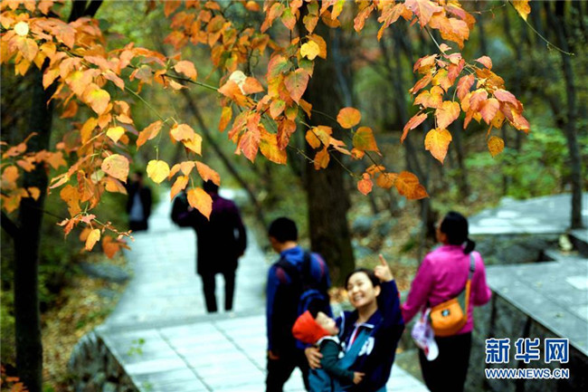 10月6日,游客在位于太行山東麓的靈壽縣五岳寨自然風(fēng)景區(qū)內(nèi)游覽。新華社發(fā)(陳其保 攝)