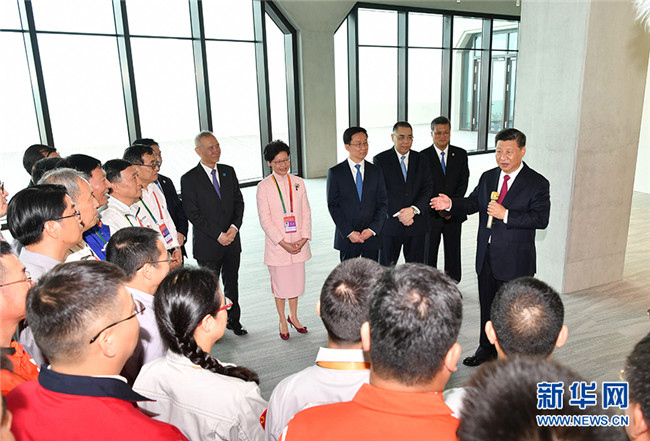10月23日上午,港珠澳大橋開通儀式在廣東省珠海市舉行。中共中央總書記、國家主席、中央軍委主席習(xí)近平出席儀式,宣布大橋正式開通并巡覽大橋。這是習(xí)近平會(huì)見大橋管理和施工等方面的代表,同他們親切交談。 新華社記者殷博古攝