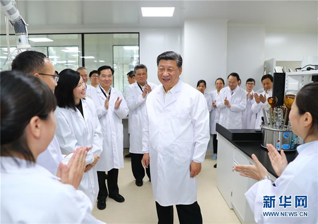 10月22日至25日,中共中央總書記、國家主席、中央軍委主席習近平在廣東考察。這是10月22日下午,習近平考察珠海橫琴新區(qū)粵澳合作中醫(yī)藥科技產(chǎn)業(yè)園。 新華社記者謝環(huán)馳攝