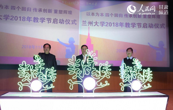 會上,蘭州大學黨委書記袁占亭、教師代表王維平、學生代表肖淑君一起點亮象征“百年樹人”的“教學樹”,正式拉開本次教學節(jié)活動的序幕。