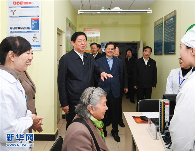 11月28日至12月1日,中共中央政治局常委、全國人大常委會(huì)委員長栗戰(zhàn)書在云南就制定基本醫(yī)療衛(wèi)生與健康促進(jìn)法開展立法調(diào)研。這是11月29日,栗戰(zhàn)書在昆明市西山區(qū)前衛(wèi)社區(qū)衛(wèi)生服務(wù)中心,與醫(yī)務(wù)人員和就診患者親切交談。 新華社記者 申宏 攝