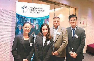 圖為張婧怡(左二)參加墨爾本大學小微金融協(xié)會的案例分析大賽時與隊友們的合影。