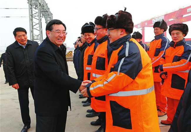 二月十一日,省委書記胡和平在西安市調(diào)研樞紐經(jīng)濟、門戶經(jīng)濟、流動經(jīng)濟發(fā)展情況。圖為他在西安鐵路集裝箱中心站慰問春節(jié)期間堅守一線的中歐班列長安號工作人員。本報記者宋紅梅攝