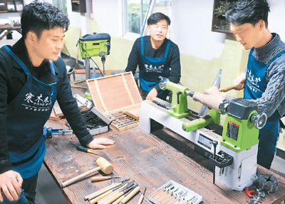 回鄉(xiāng)創(chuàng)業(yè)正成為大學生就業(yè)的重要方向。上圖為浙江省湖州市安吉縣統(tǒng)里村,3名大學畢業(yè)生在工作坊內(nèi)加工花器。張禮慶攝(新華社發(fā))