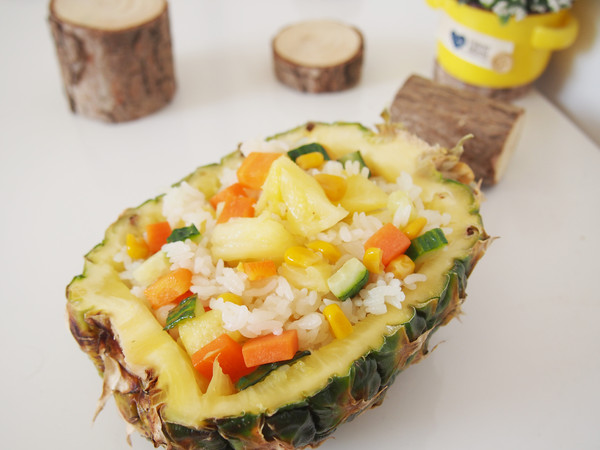 主料:菠蘿100克 胡蘿卜50克 黃瓜50克 甜玉米粒50克 大米200克 清水180克