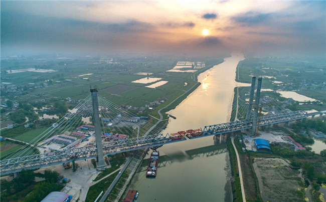 北起河南商丘,向南經(jīng)安徽阜陽(yáng)、合肥、蕪湖,直抵浙江杭州的商合杭鐵路,全長(zhǎng)794.55公里,設(shè)計(jì)時(shí)速350公里,線(xiàn)路北接鄭州至徐州高鐵,并與北京至福州高鐵和滬漢蓉高鐵相連,在杭州通過(guò)寧杭高鐵與京滬高鐵相通,是縱貫安徽省全境、連接中原、江淮與長(zhǎng)三角地區(qū)的重要交通主干線(xiàn)。此次裕溪河特大橋順利合龍極大地推動(dòng)了商合杭鐵路全線(xiàn)的建設(shè)步伐,建成通車(chē)后,合肥與省內(nèi)周邊城市將形成半小時(shí)至1小時(shí)的交通圈,合肥到杭州、商丘均可實(shí)現(xiàn)一天往返,沿線(xiàn)群眾可以充分享受到長(zhǎng)三角地區(qū)經(jīng)濟(jì)發(fā)展的紅利,對(duì)促進(jìn)區(qū)域經(jīng)濟(jì)聯(lián)系,增強(qiáng)華東地區(qū)經(jīng)濟(jì)發(fā)展的后勁具有十分重大的意義。人民網(wǎng)記者史家民攝影報(bào)道