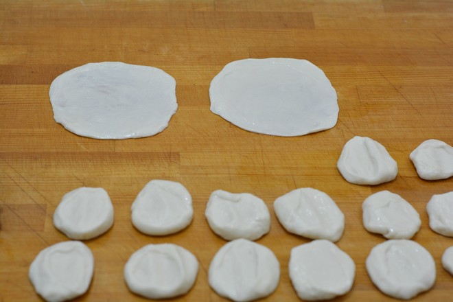 6.取兩個劑子,按扁后在其中一個上面刷一層植物油;