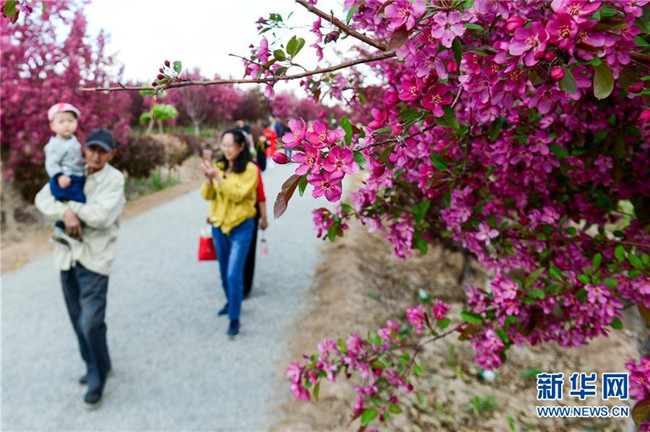 當日,正在新疆昌吉回族自治州呼圖壁縣舉行的第四屆海棠花季鄉(xiāng)村文化旅游節(jié)吸引了眾多游客。目前,新疆天山北麓海棠花相繼綻放,進入最佳觀賞期。 新華社發(fā)(丁磊攝)