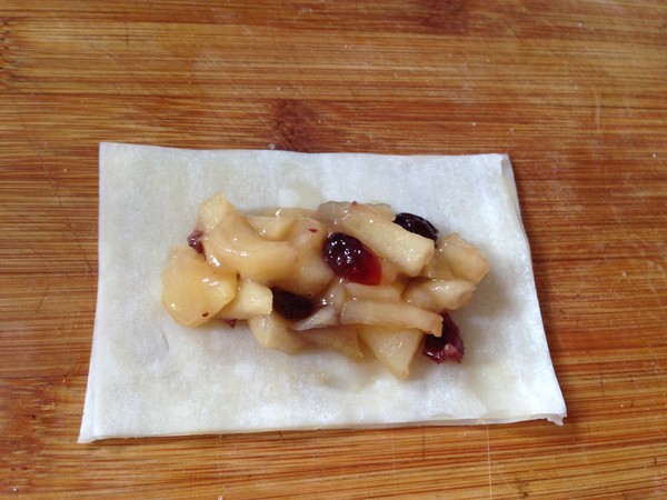 主料:蘋(píng)果1個(gè) 餛飩皮30張 蔓越莓干20克 黃油(餡料)8克